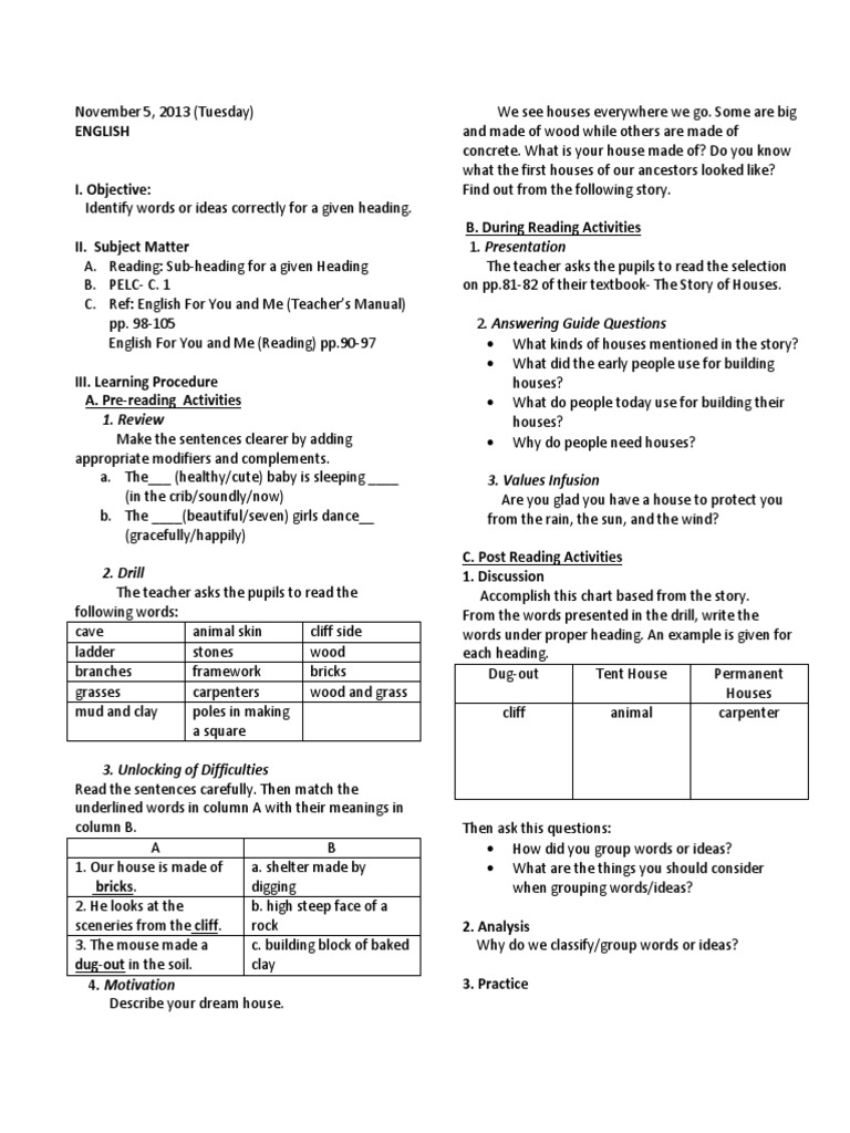 Doc Semi Detailed Lesson Plan In Technology And Livelihood Education Cookery Bongabon National High School Date Ian Naval Academia Edu from 0.academia-photos.com I can learn new strategies for unlocking hard words from my teacher and my classmates. Students should know at least something about . Look at other word clues. Difficulties' and in the possible overlap of conditions. English language learners (ells) have great difficulty jumping into new texts without any background support. In an effort to build students' academic language, educators are incorporating increasingly complex texts into their lesson plans. Use a 2 minute timer to keep the activity on pace. Ish ideas and activities, without recourse to rare and even fictitious words.